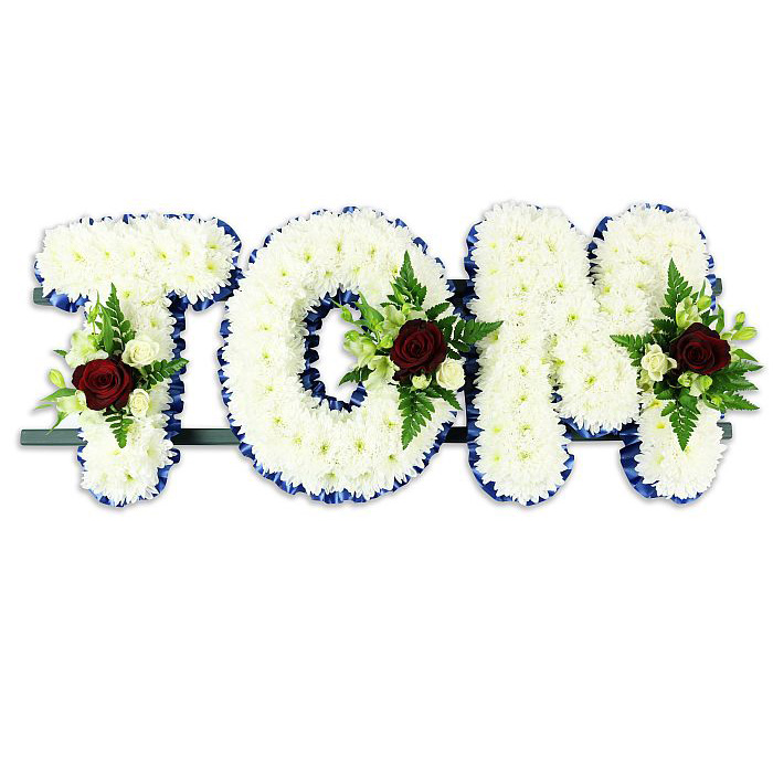 Express your heartfelt sympathies with our sophisticated letter tribute flower arrangement. This elegant bouquet features a stunning mix of white chrysanthemums, red roses, and white freesias, symbolizing love, remembrance, and peace.